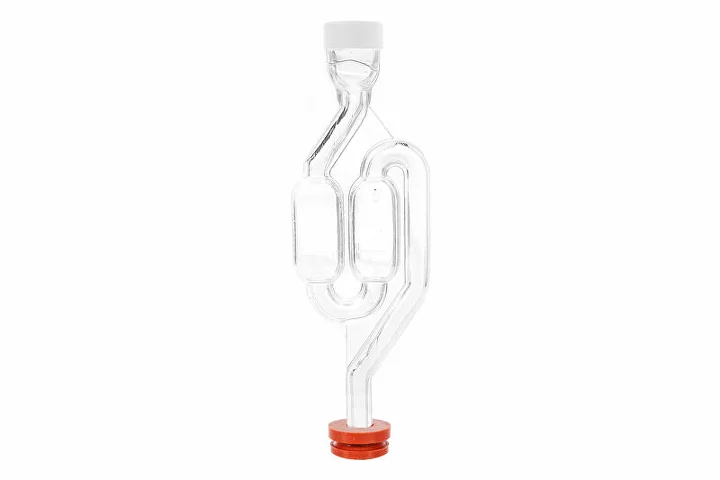 Гидрозатвор для браги включает несколько колб: одна заполняется водой, вторая остаётся пустовать. В результате кислород не может проникать в тару через жидкую среду, а углекислота, напротив, имеет свободный выход.
