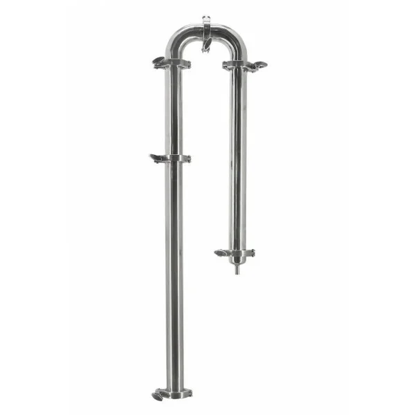 С помощью ректификационной колонны можно получить чистый спирт с крепостью в 96,6%. Рассматривая устройство можно обратить внимание на трубу диаметром 1,5 или 2 дюйма с царгами и дефлегматором, который перекрывается краном и холодильником. Когда брага нагревается, то можно открыть кран, чтобы отобрать спиртовой пар, отсекая головы.